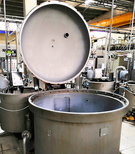 Процесс крашения после отжима волокна водой: Крашение волокна - это процесс крашения текстильных волокон в массовом виде без какой-либо физической обработки. Крашение волокна чаще встречается с шерстяными, полиамидными и акриловыми волокнами. Когда хлопчатобумажный материал намокает, он набухает и приобретает более плотную структуру, что затрудняет циркуляцию красящего раствора в массе. В водяных прессах с двойной корзиной перед окрашиванием производится подготовка.