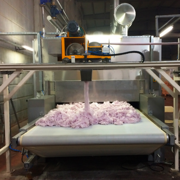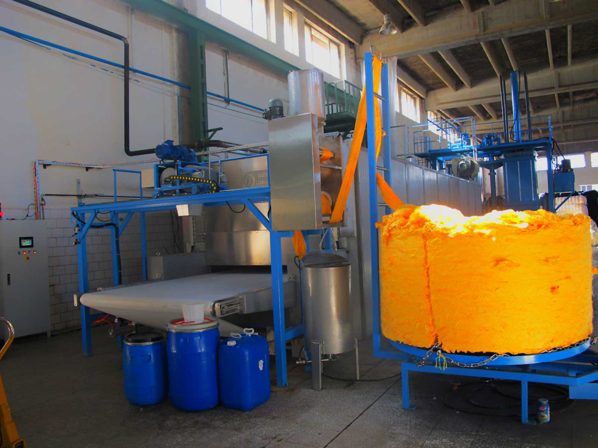 Обработка волокна водой до и после отжима волокна.